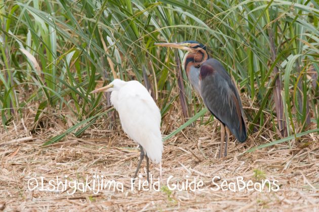 チュウダイサギとムラサキサギ。