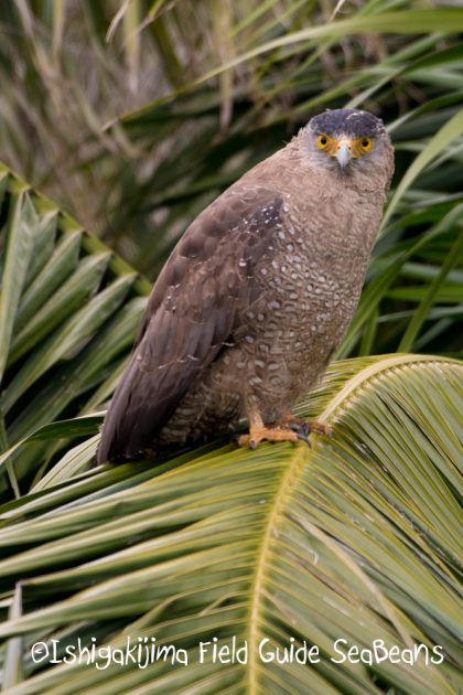 ヤエヤマヤシの葉にカンムリワシが止まっていました!!