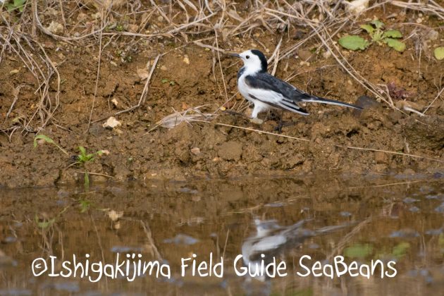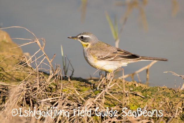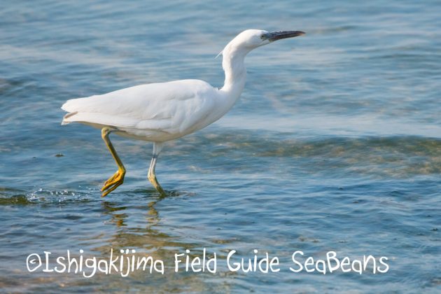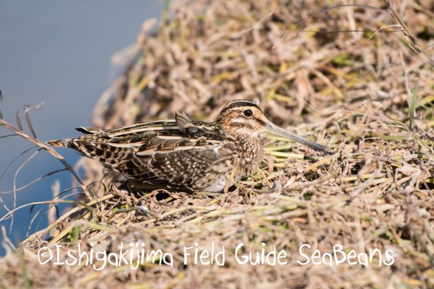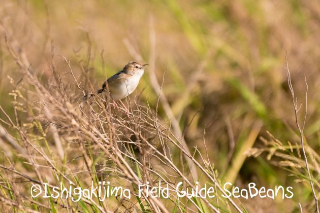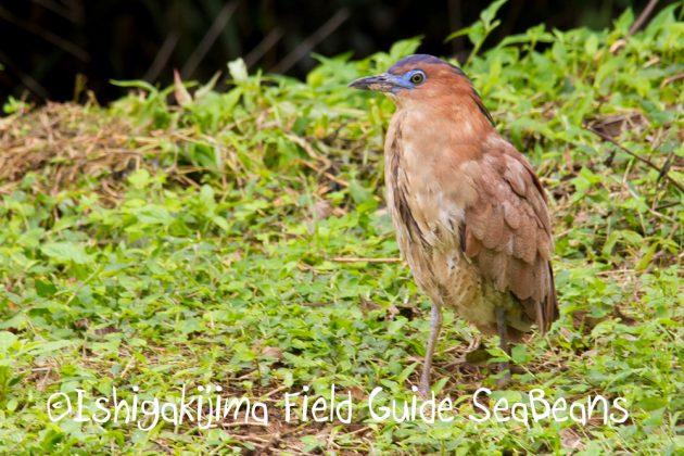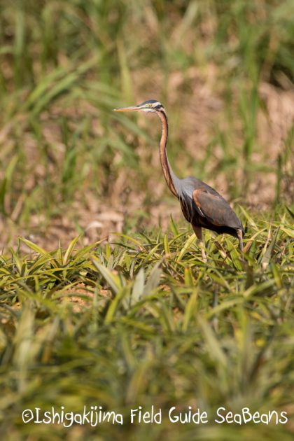 背後はサトウキビ、足元はパイナップル、南国らしい場所にムラサキサギ。