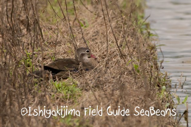 オシドリ数羽が越冬していますが、この子は元気がありません。