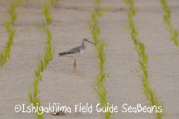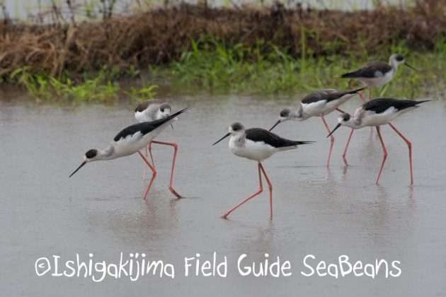 久しぶりにマングローブの奥から耕作地に出てきたセイタカシギの群れ。