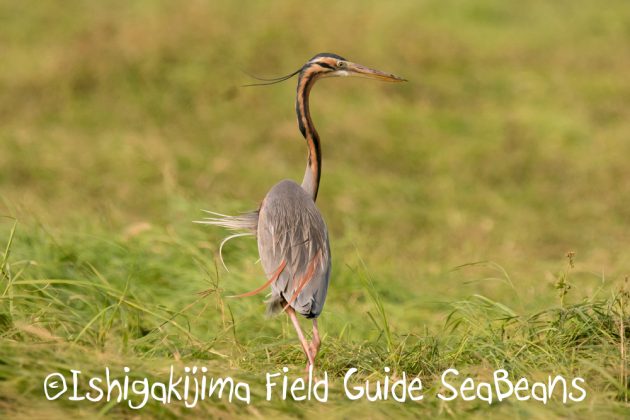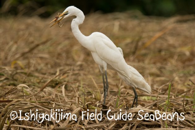 大きなサキシマヌマガエルを捕獲したチュウダイサギ。