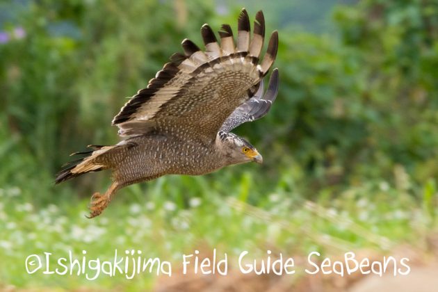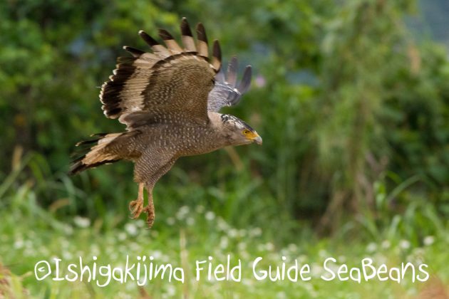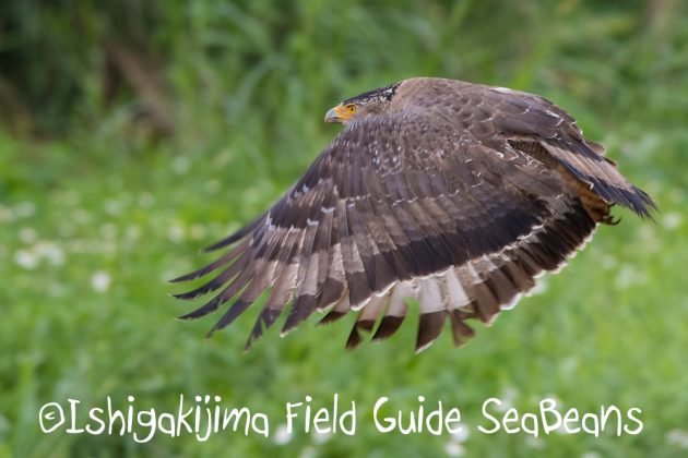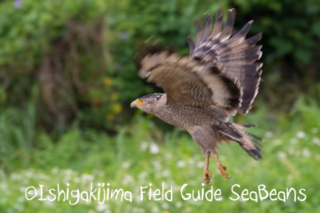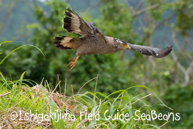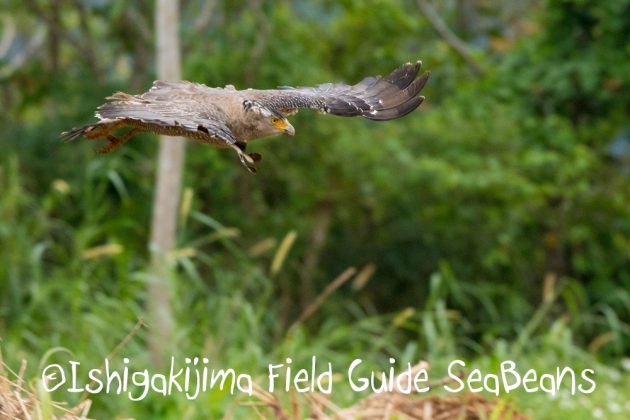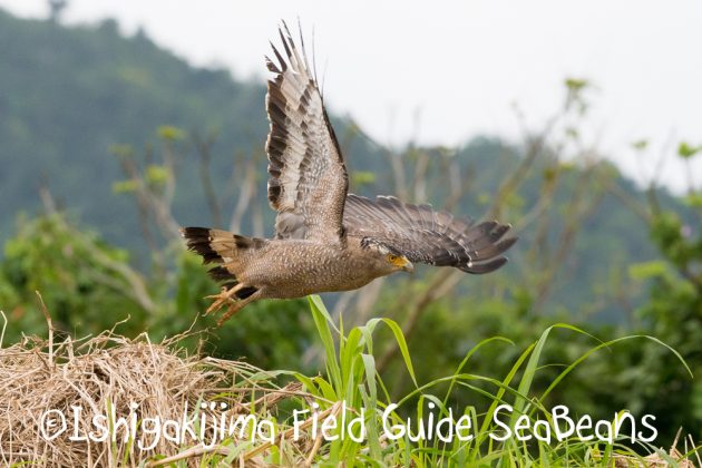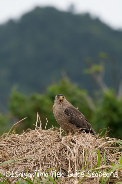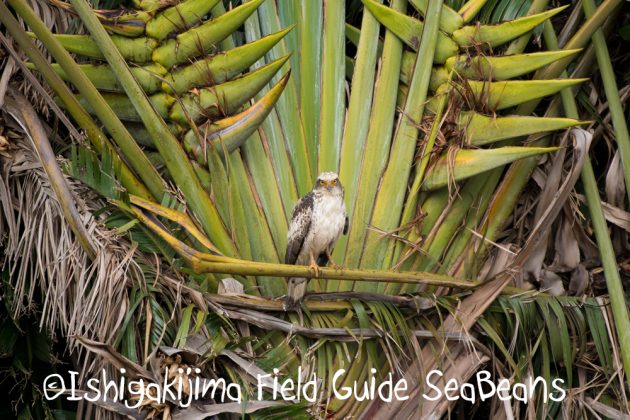 なんだか迫力ある場所に止まったカンムリワシ幼鳥。