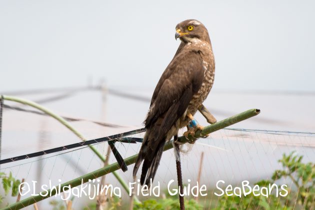最近見かけなかった足環と発信機を付けた謎のサシバ。