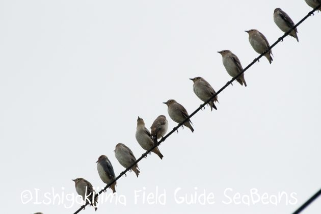 下から4羽目がシベリアムクドリだと思うのですが、大雨なのと腹しか見えないので、観察、撮影していたら飛び去ってしまいました。