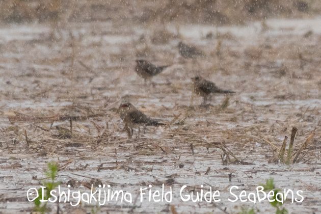 土砂降りの中、ツバメチドリとツメナガセキレイの群れを発見!!