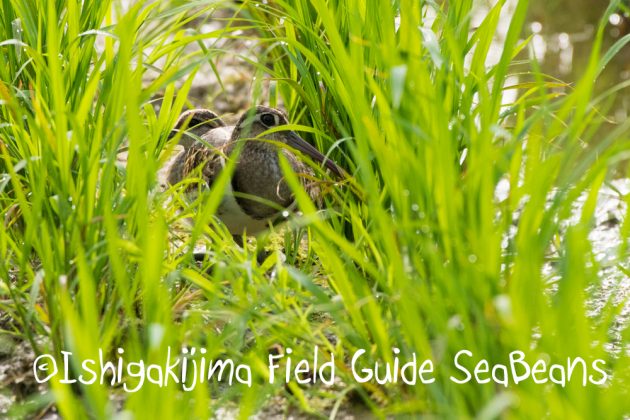 タマシギ親子、お父さんと幼鳥1羽。