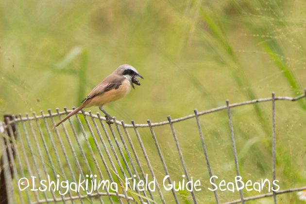 ペリットを吐き出すシマアカモズ。