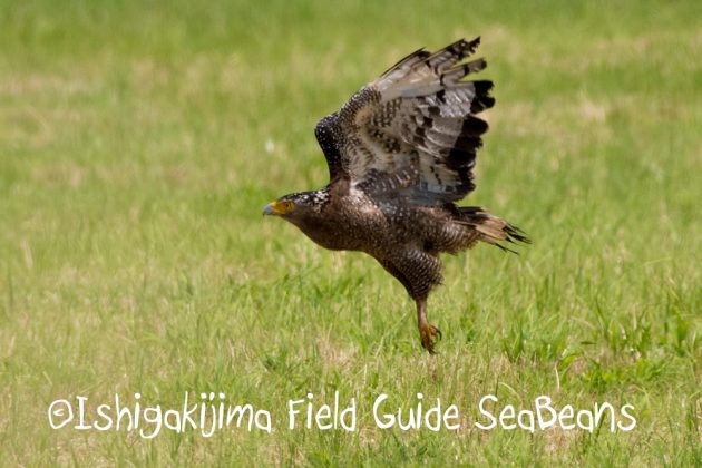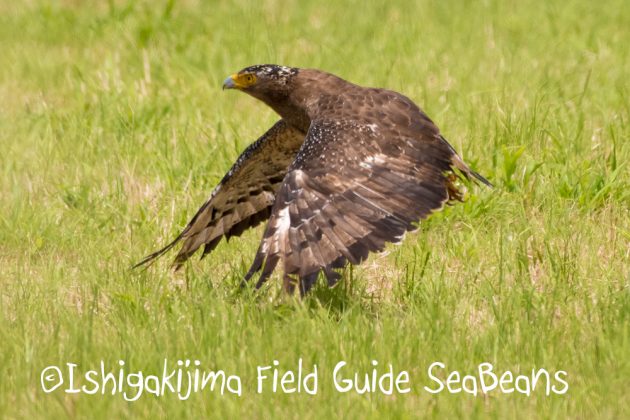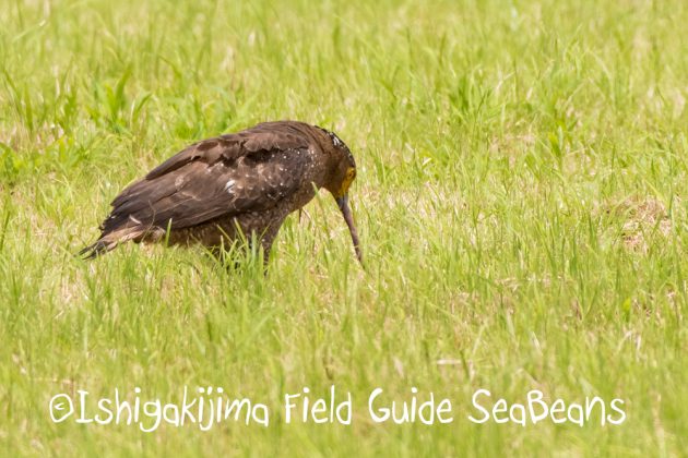 大きなミミズを捕獲したカンムリワシ若。