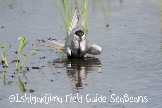 水浴び中のクロハラアジサシ。