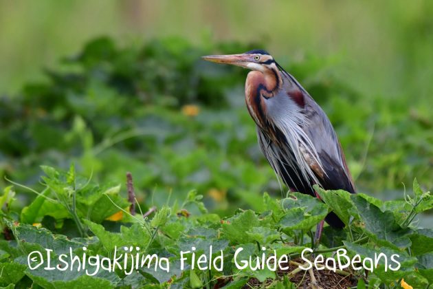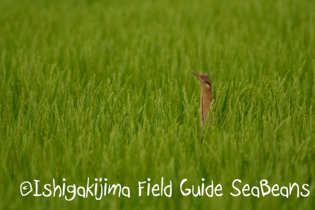 稲の中から顔を出すリュウキュウヨシゴイ。