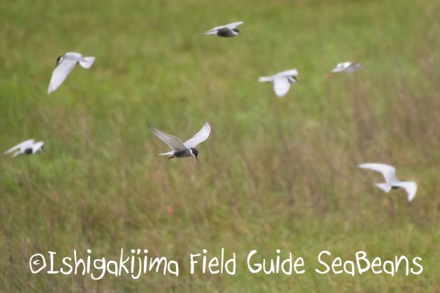 海から多数のクロハラアジサシが渡ってきたと思ったら、すぐに目の前から消え去りました。