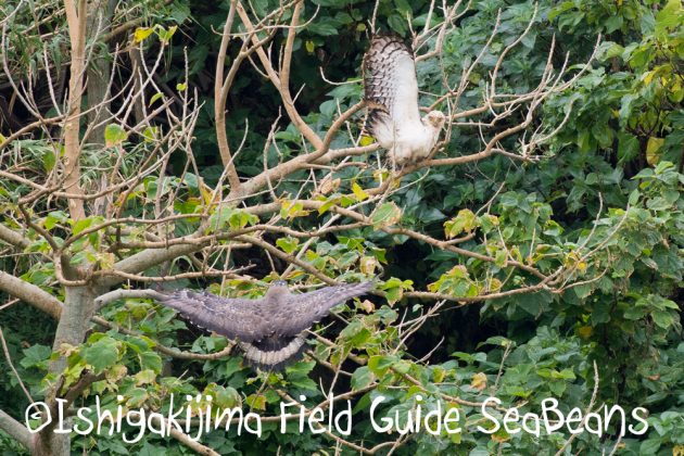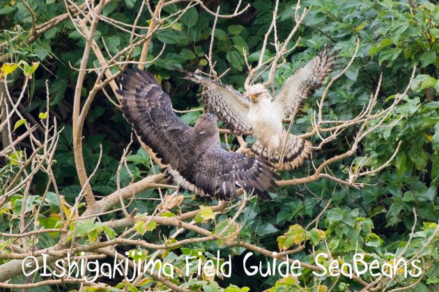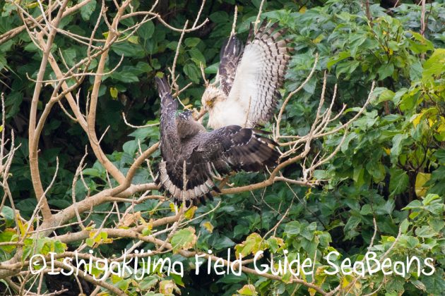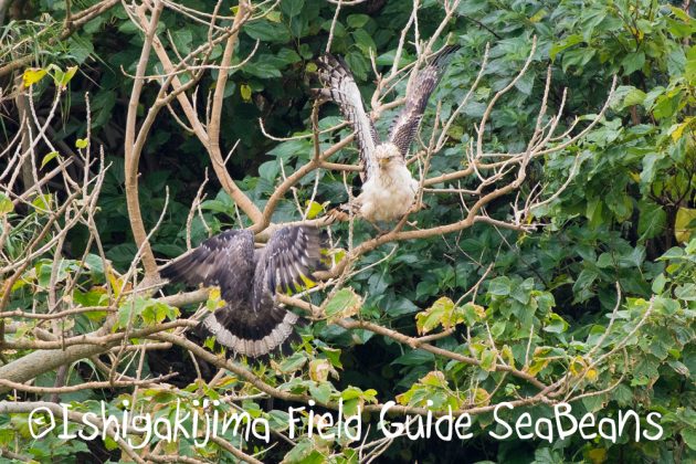 カンムリワシ成鳥の縄張りに入り込んだ幼鳥を執拗に追い払いに出ました!!