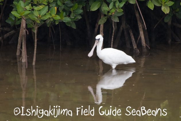 クロツラヘラサギ2羽がヤエヤマヒルギ林内に居ました。